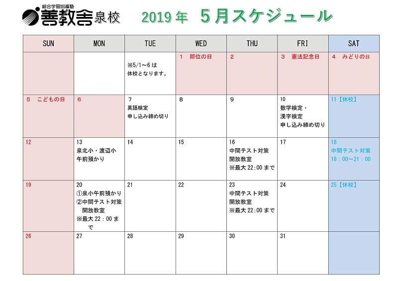 泉校 2019年5月予定表