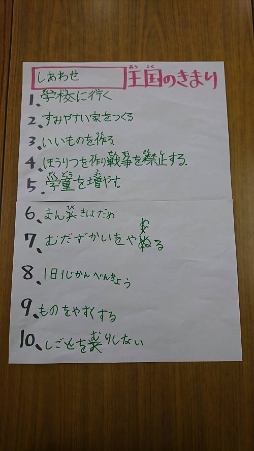 テーマは『世界で一番幸せな国のきまりやルールをつくること』。