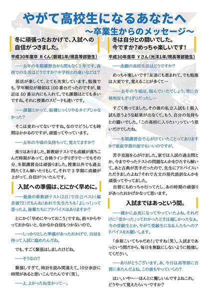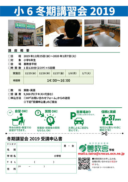 【中1・2 小6 平校】冬期講習会 2019 開講
