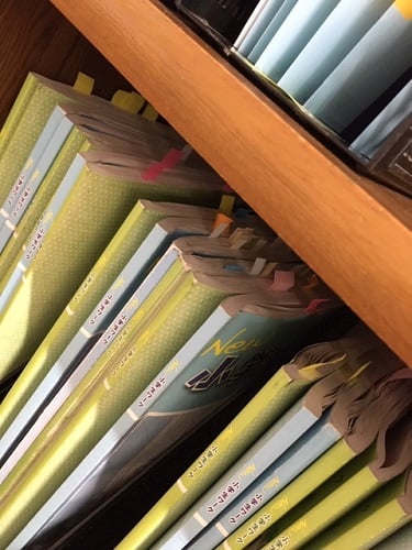 「ワークにたくさんの付箋がついていると